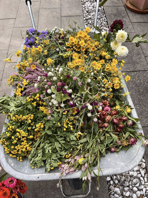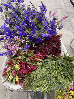 Biotrockenblumen · 17. Juli 2025 Erntetag Celosien , Rittersporn, Hirse, Amaranth, Mutterkraut, Kamille, Meerlavendel, Zinnien, Staticen tagPlaceholderTags: